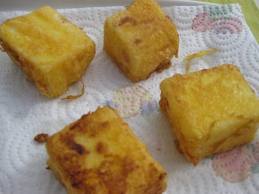 Antes de cortar es importante que la masa esté fria y bien espesita, para que no se rompa.Corta esta masa fría en cuadrados o rectángulos, pásalos por harina y huevo y fríelos en una sartén con abundante aceite.Deja secar en papel absorvente y espolvorea con canela molida y azúcar.